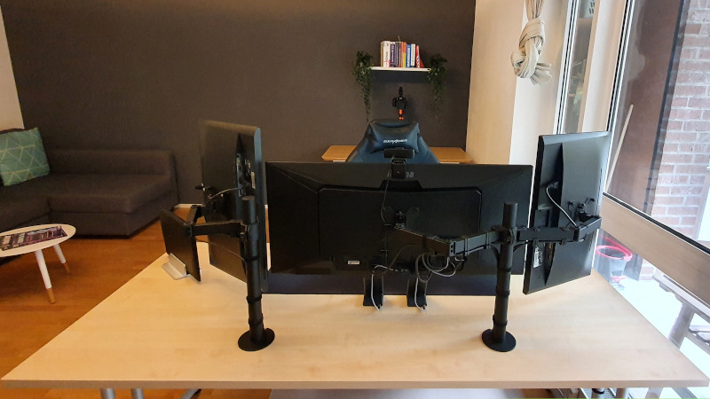 Monitor arms also let you move the screen to the right height for your eyes and neck. That's better for your health too. It's a win all around.
